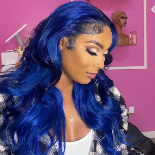 13x4 Dark Blue Body Wave Lace Front Human Hair Wig 200% Density