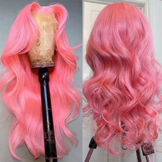 13x4 Pink Body Wave Lace Front Wig Human Hair 180% Density