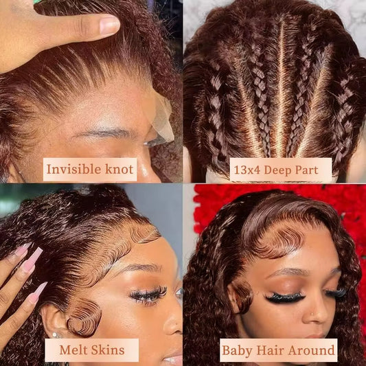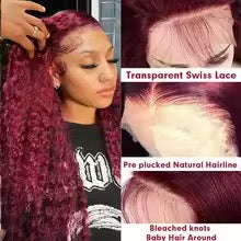 30 inch 13x6 Burgundy Deep Wave HD Transparent Full Lace Frontal Wig Human Hair 250% Density
