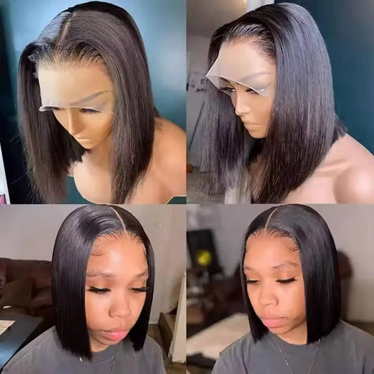 13x6 Hd Transparent Straight Lace Frontal Wig Pre Plucked with Baby Hair Glueless Bob Wigs for Women Natural Black 200% Density
