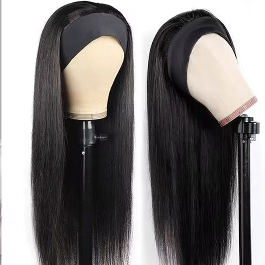 Straight Human Hair Wig Lace Front Glueless Headband Wig