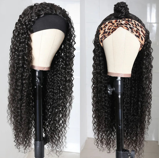 Glueless Deep Wave Curly Headband Human Wig 180% Density